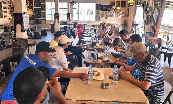 Selain berdiskusi, Bupati Erlina dan Wabup Juli Suryadi turut menyapa masyarakat yang tengah menikmati kopi pagi di Warkop GL II, menambah suasana akrab dan terbuka dalam kegiatan tersebut.