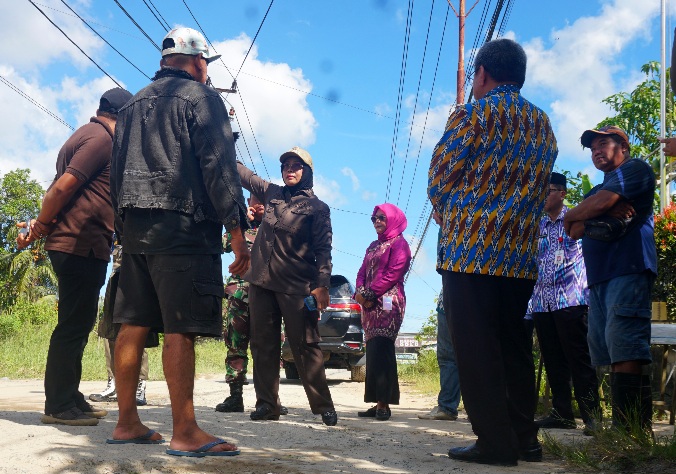 Bupati Erlina meninjau Jalan Adi Wijaya Antibar yang rusak. Pemkab Mempawah siapkan Rp400 juta untuk perbaikan secara bertahap dan berkelanjutan.