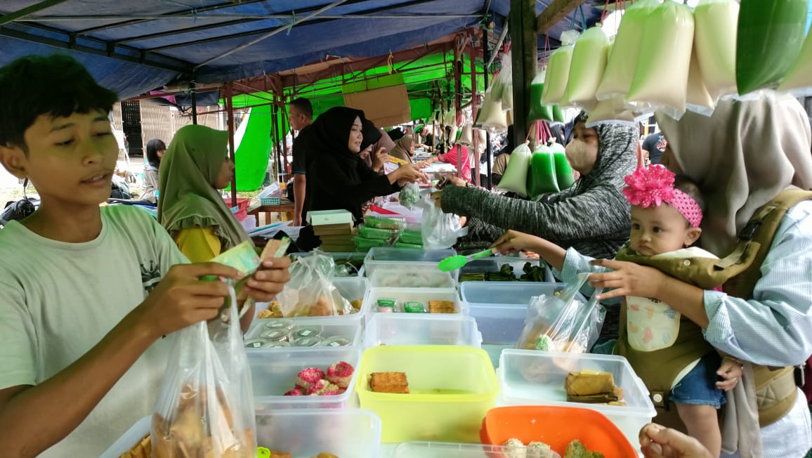 Puluhan lapak pedagang takjil yang menyediakan berbagai jenis makanan dan minuman terlihat dikerubuni warga.