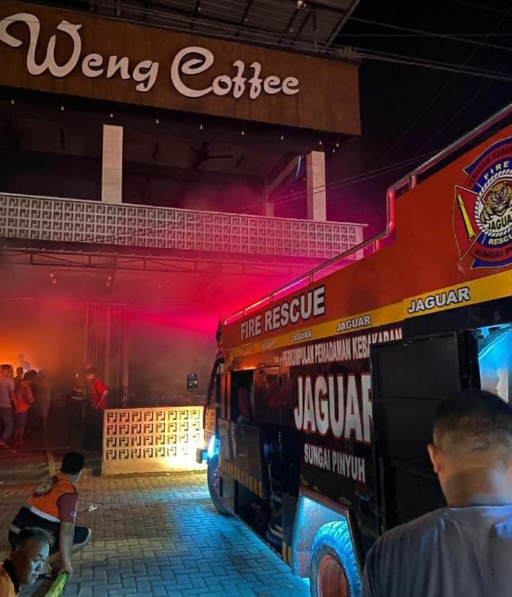 Kebakaran kecil di Weng Coffee Sungai Pinyuh pada Selasa malam berhasil dipadamkan cepat. Api diduga muncul dari kompor dapur. Tidak ada korban jiwa.