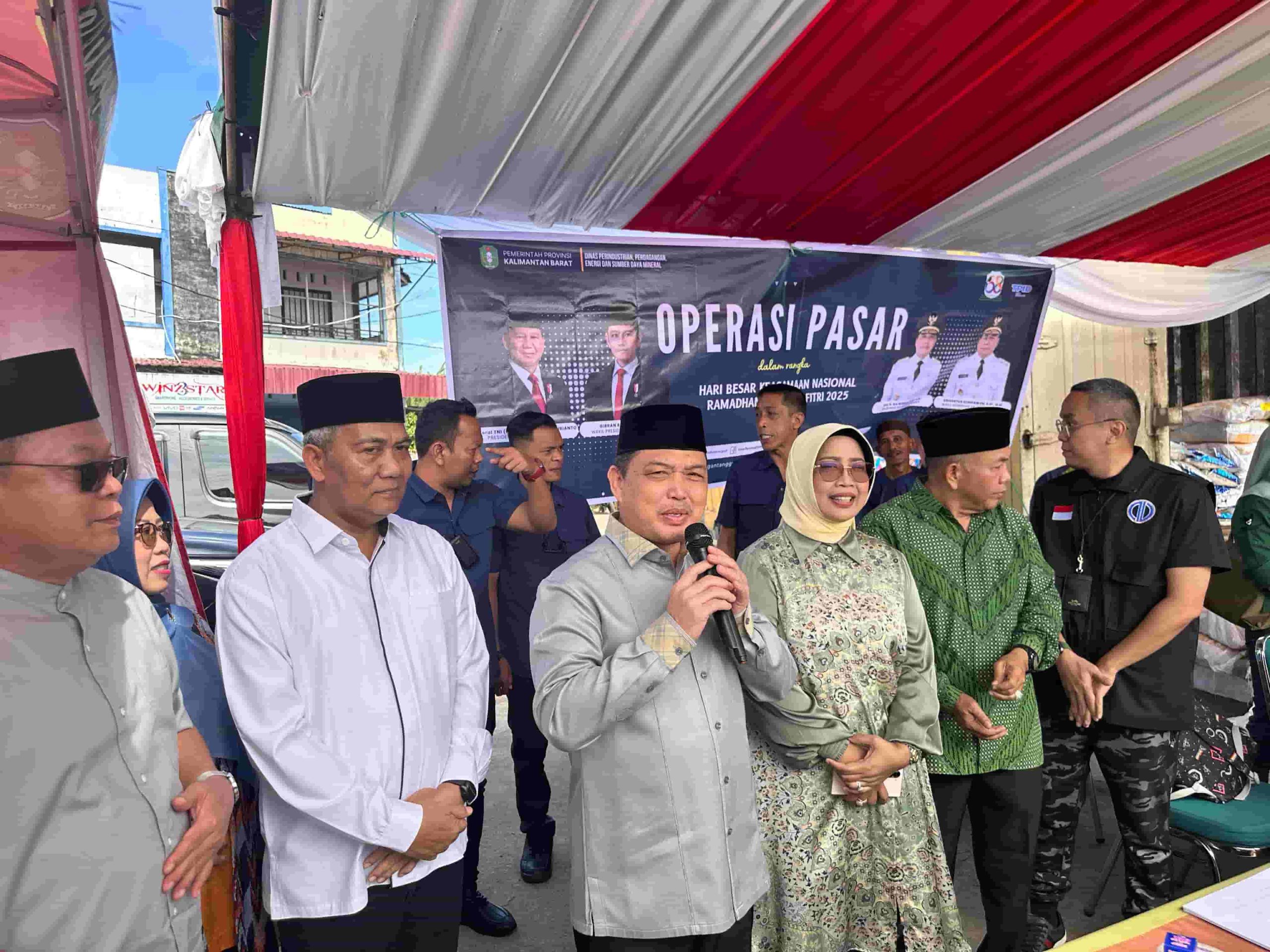 MEMPAWAH – Bupati Mempawah, Erlina, bersama Wakil Bupati, Juli Suryadi, mendampingi Gubernur Kalimantan Barat, Ria Norsan, dalam peninjauan pelaksanaan Operasi Pasar yang diselenggarakan oleh Pemerintah Provinsi Kalimantan Barat di Pasar Sebukit Rama, Mempawah, Sabtu (8/3).