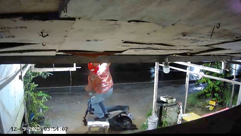 Namun pelaku tidak langsung melaksanakan aksinya. Dia sempat mondar-mandir dan memantau situasi disekitar. Ketika situasi benar-benar sepi, dengan sigap pelaku kemudian melepas bohlam lampu yang terpasang di bagian depan bangunan, dengan memanjat meja kecil. Tak ayal, kondisi teras pun lalu gelap guling, dan pelaku langsung melarikan diri menggunakan kendaraannya.