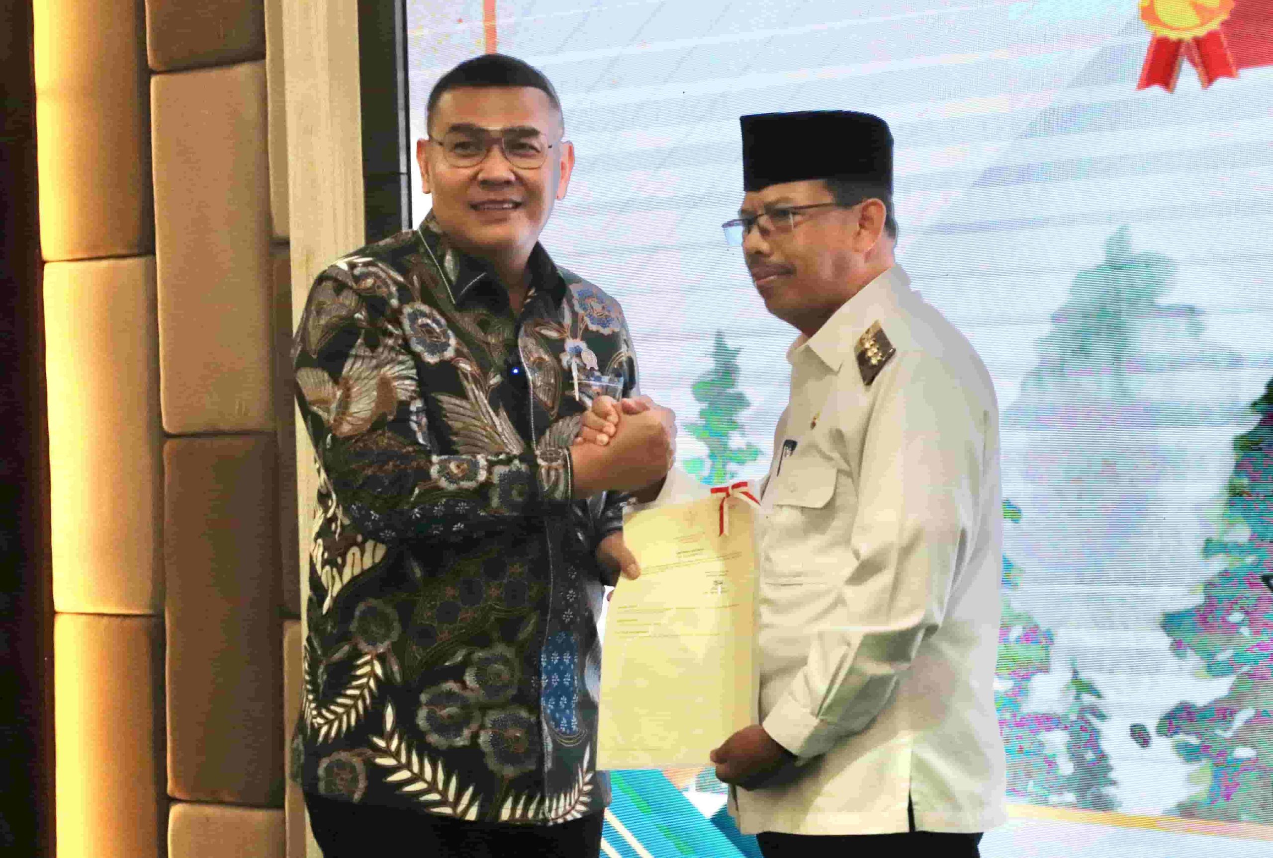 Dalam kesempatan tersebut, Pj Bupati Ismail menerima Sertipikat Aset Milik Pemerintah Daerah yang diserahkan langsung oleh Wakil Menteri Agraria dan Tata Ruang (ATR) / Badan Pertanahan Nasional (BPN), Ossy Dermawan.
